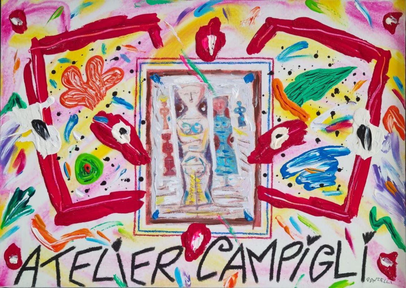 DONZELLI BRUNO Napoli 1941 "Atelier Campigli" Olio e tecnica mista su tela cm 70x50. Firmato sul fronte in basso a destra, al verso titolo e firma. Autentica su foto a cura del Maestro.