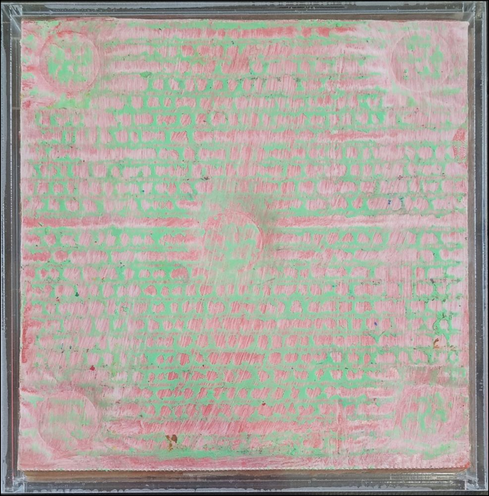 MASI PAOLO Firenze 1933 "Senza titolo" Tecnica mista su cartone pressato cm 20x20 del 2022. Firmato e datato al retro. Contenuto in teca di plexiglass. Autentica su foto a cura del Maestro.