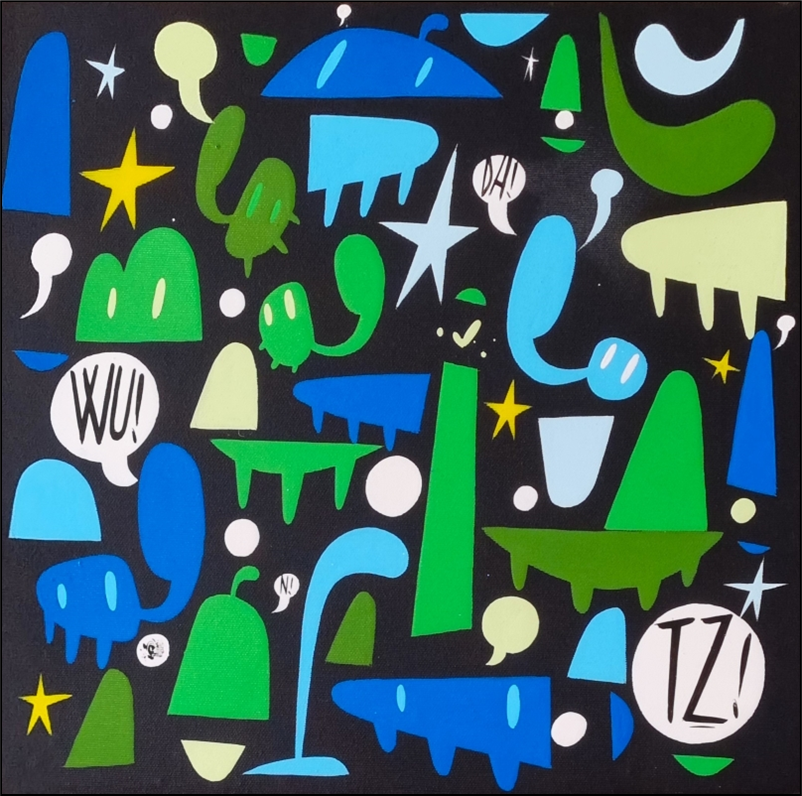 WILLOW Italia 1978 "A luci spente" Smalto su tela cm 40x40 del 2020. Al verso titolo, firma e data. Certificato di autenticità a cura di altra galleria.
