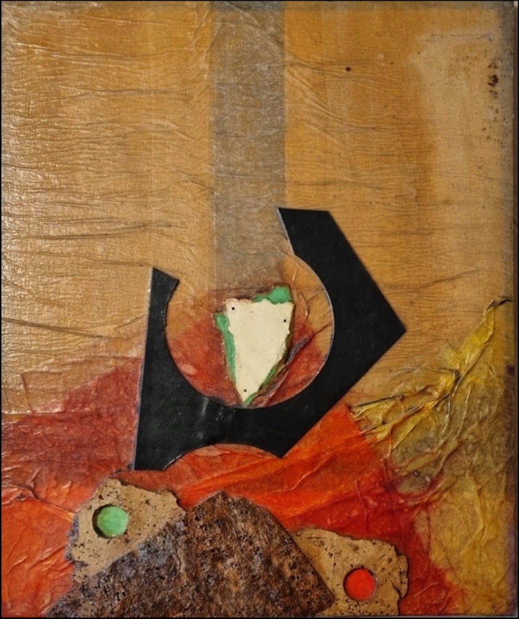 CRIPPA ROBERTO Monza 1921 - Bresso 1972 "Senza titolo" Acrilici, tecnica mista e sugheri applicati su tavola cm 37,5x43,5. Firmata al verso. Autentica ed archiviazione su foto a cura di Roberto Crippa Jr.