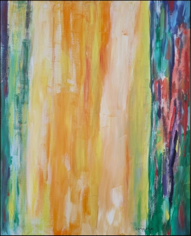 CORPORA ANTONIO Tunisi 1909 - Roma 2004 "Oriente" Acrilico su tela cm 81x100 del 2000. Firmato sul fronte in basso a destra. Al verso titolo, tecnica e firma per autentica. Archivio ed autentica su foto a cura del Maestro. Opera pubblicata a pag. 368 del Catalogo Generale Ragionato dei dipinti (vol. I) a cura di Floriano De Santis, e sul Catalogo "L'astrazione lirica di Corpora", dipinti ed acquerelli dal 1944 al 2002. Già in mostra a Bologna, Milano, Urbino, Giulianova.