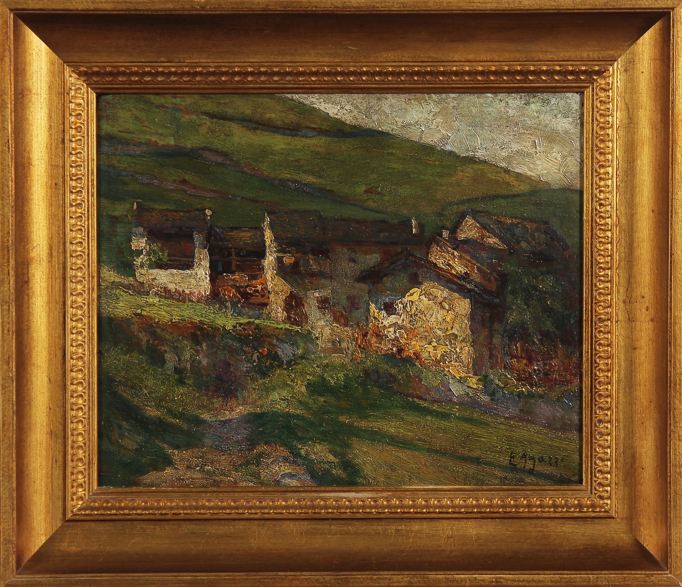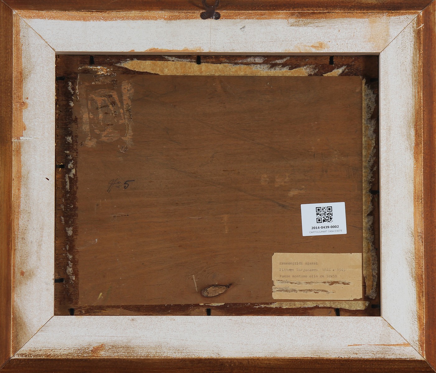 AGAZZI ERMENEGILDO (1866 - 1945) Paese Montano. Olio su tavola. Cm 39,00 x 33,00. Firma in basso a destra. Cornice presente
