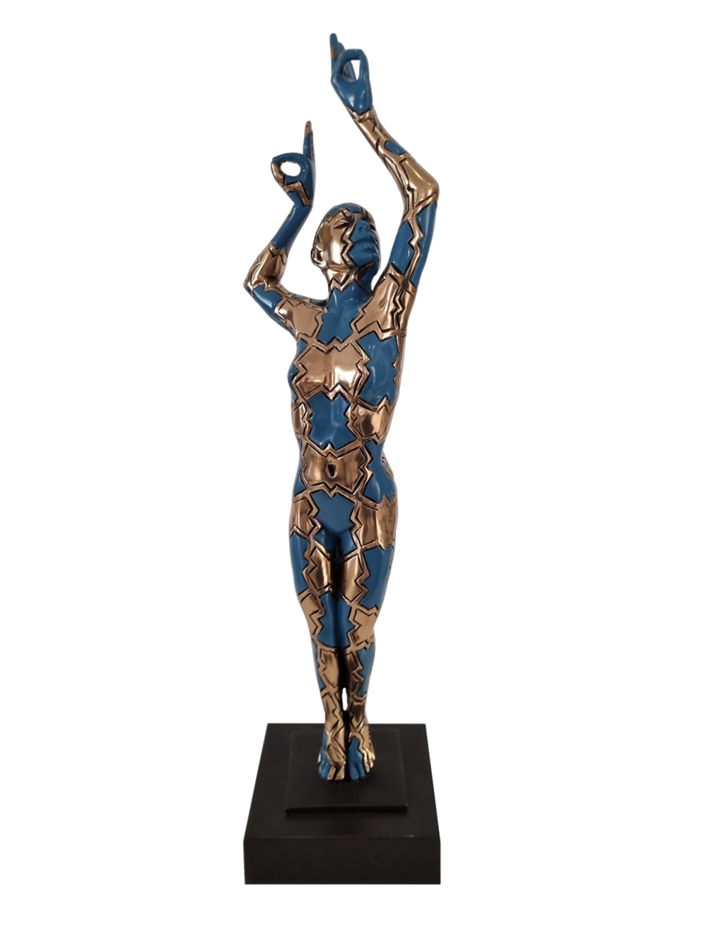 RABARAMA - PAOLA EPIFANI Roma 1969 "Chin" Scultura in bronzo giallo lucido con inserto pittorico in smalto blu cm 11x9,5x45,5(h), peso kg. 3. Tiratura 18/25 incisa sul piede. Certificato di autenticità con numero di archivio a cura di Philart e firmato dall'Artista.