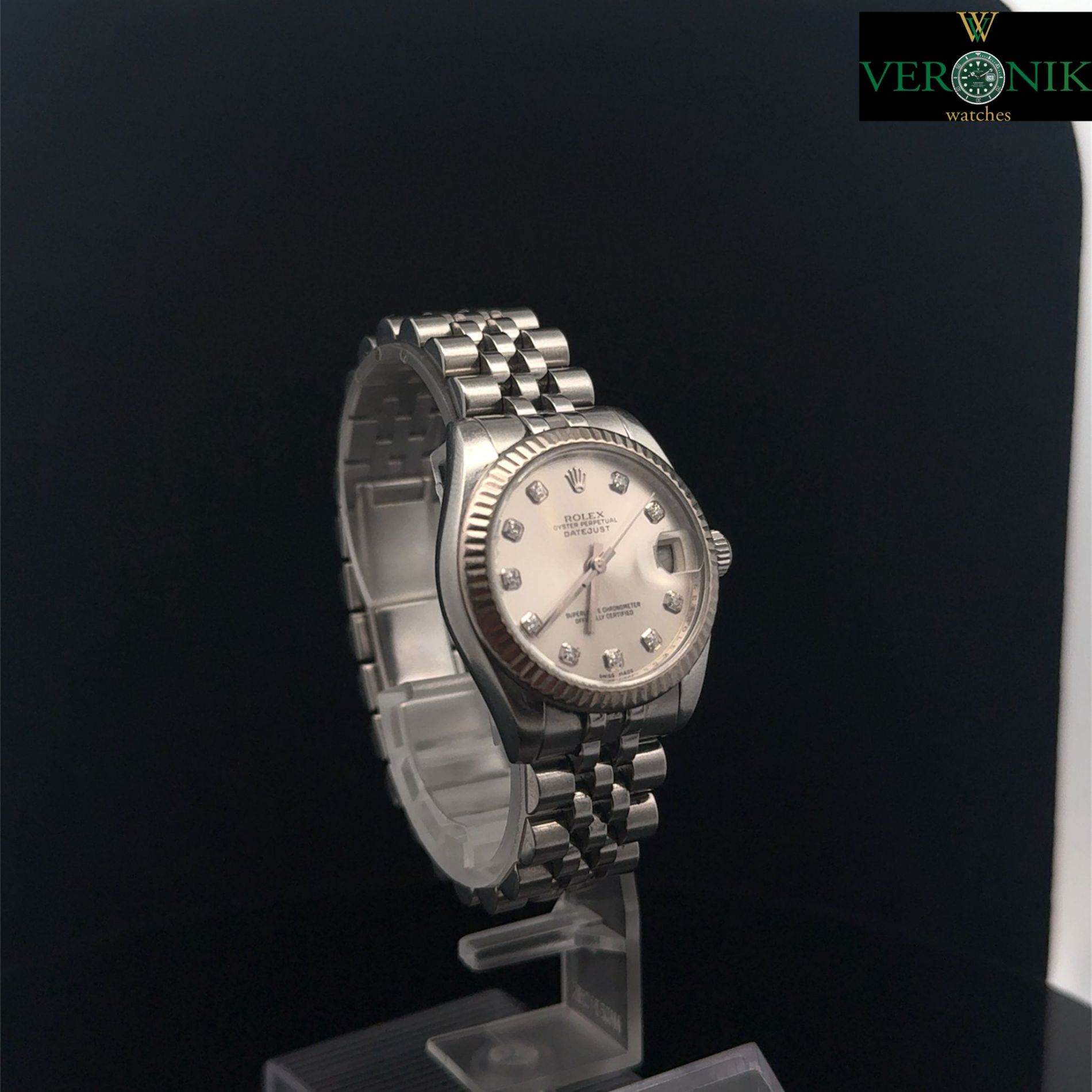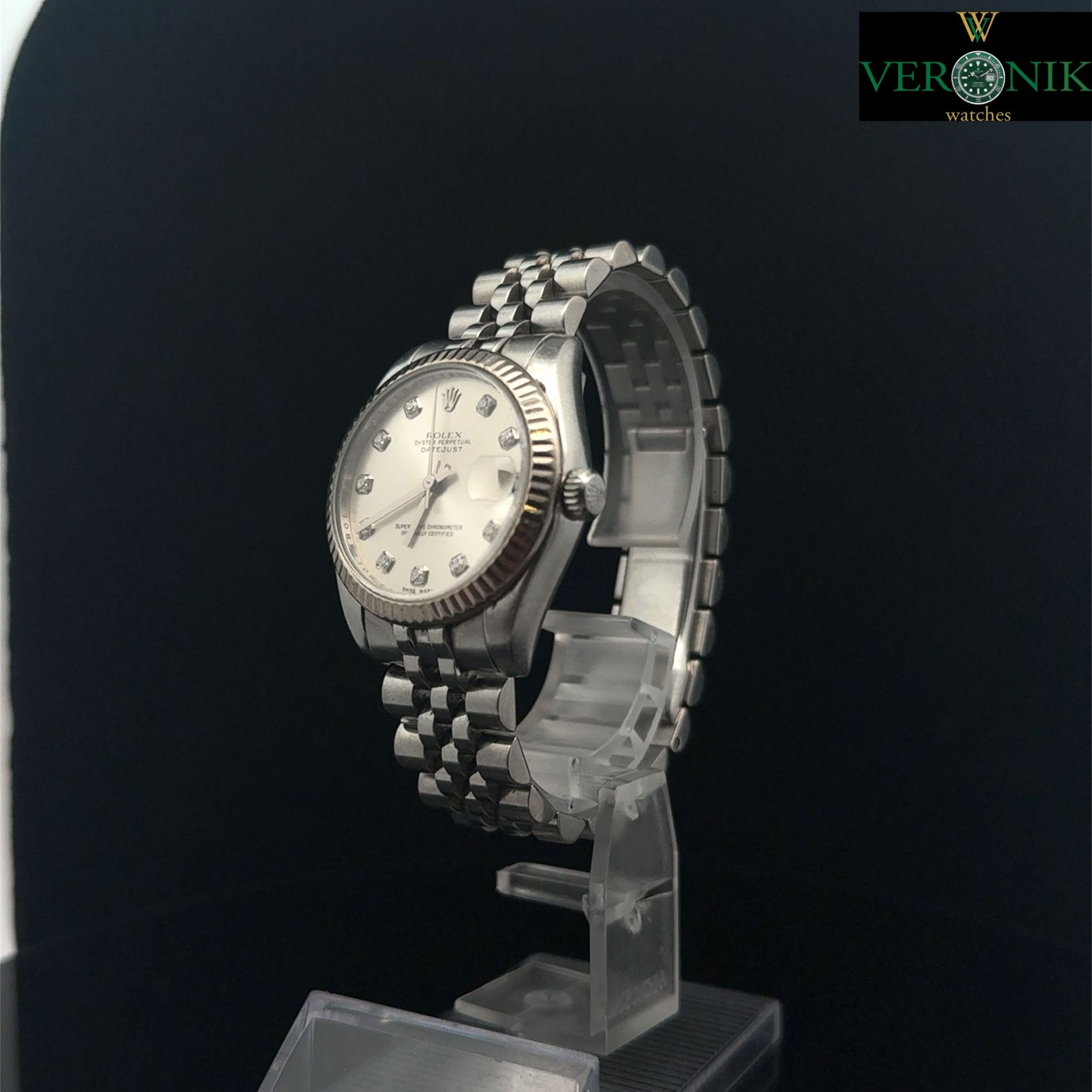 Rolex datejust 178274 Diamante 31mm Quadrante brillanti Cinturino jubilee chiusura a scomparsa Carica automatico Vetro zaffiro Lunetta oro bianco Cinturino e cassa acciaio Orologio con documenti originali, no box Anno 2012 - COMMISSIONE D’ASTA 25%
