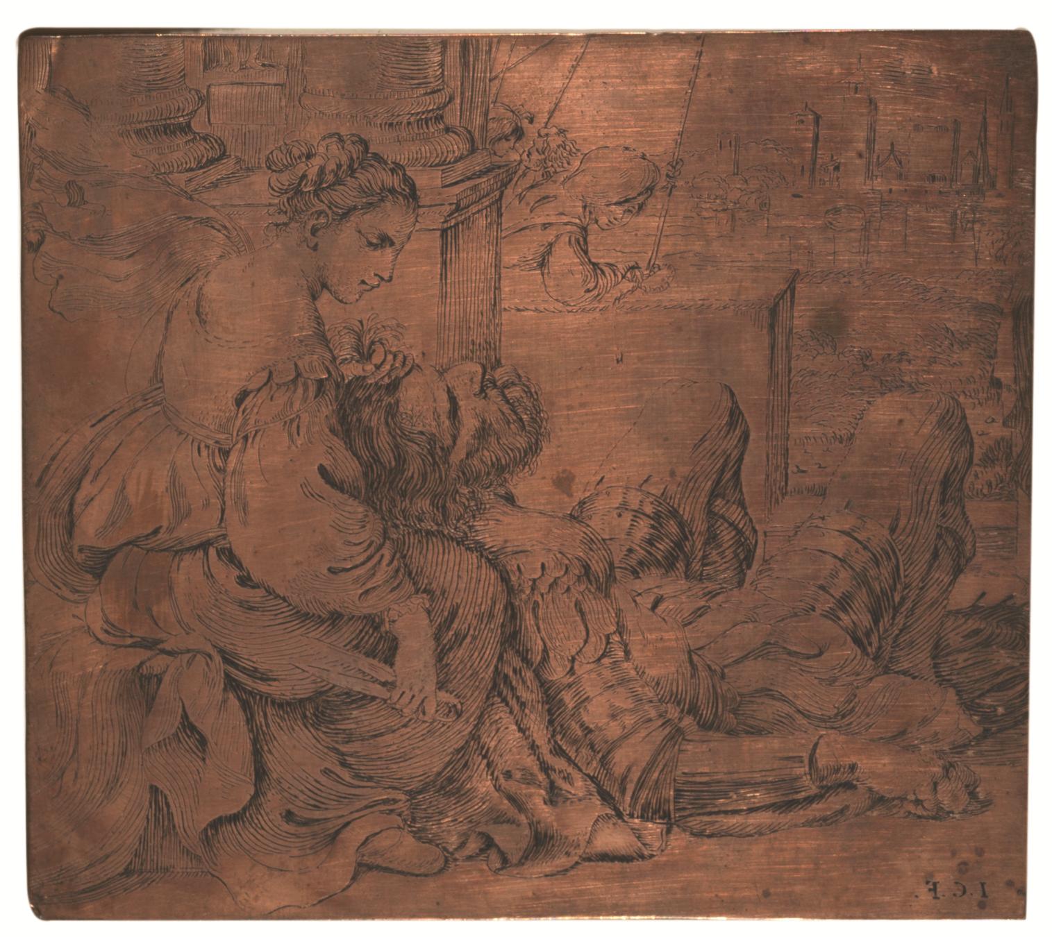 Matrice calcografica originale in rame dell’acquaforte Sansone e Dalila (TIB 44/20, 4). mm 134x152.