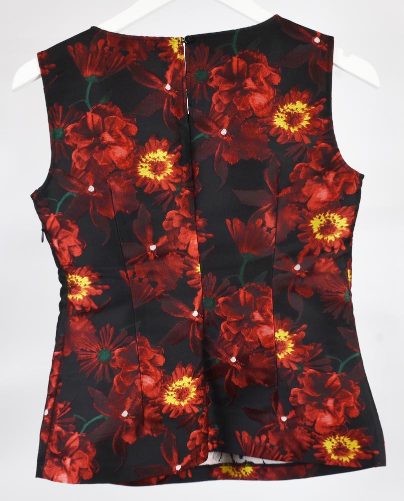 Sleeveless top with floral pattern and beads applied to the collar. Side zipper. Size S. Made in China. Perfectly preserved.
