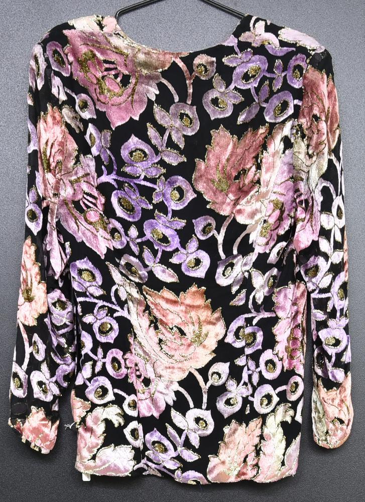Blusa con decorazione floreale. Manca etichetta di taglia e composizione. Made in Italy. Lavorazione sartoriale. Ben conservato.