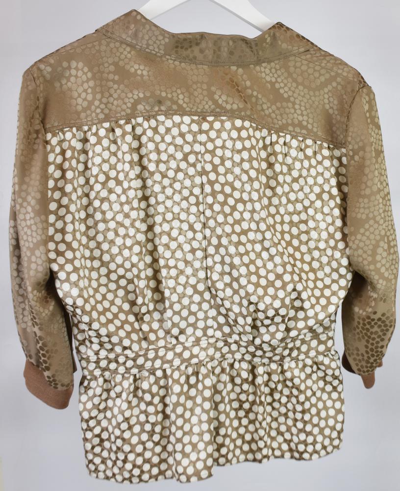 Blusa in seta con coulisse in vita. Chiusura con bottoni. Taglia 44 IT. Prodotto in Italia. Perfettamente conservata.
