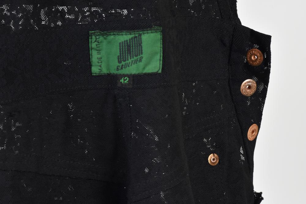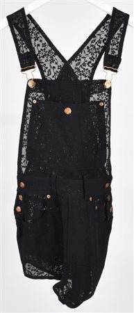 Short overalls in stretch transparent lace. Metal snap buttons featuring the Maison’s logo. Size 42. Made in Italy. Well-preserved.