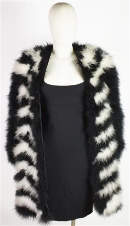 Pelliccia di marabu' bianca e nera. Manca etichetta di taglia e composizione. Lunghezza 84 cm. Probabilmente manifattura francese. Anni '80. Taglia unica. Ben conservata.