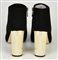 Black suede ankle boots with a wide gold heel. Heel height: 10.50 cm. Size 7.5. Made in China. Well preserved.