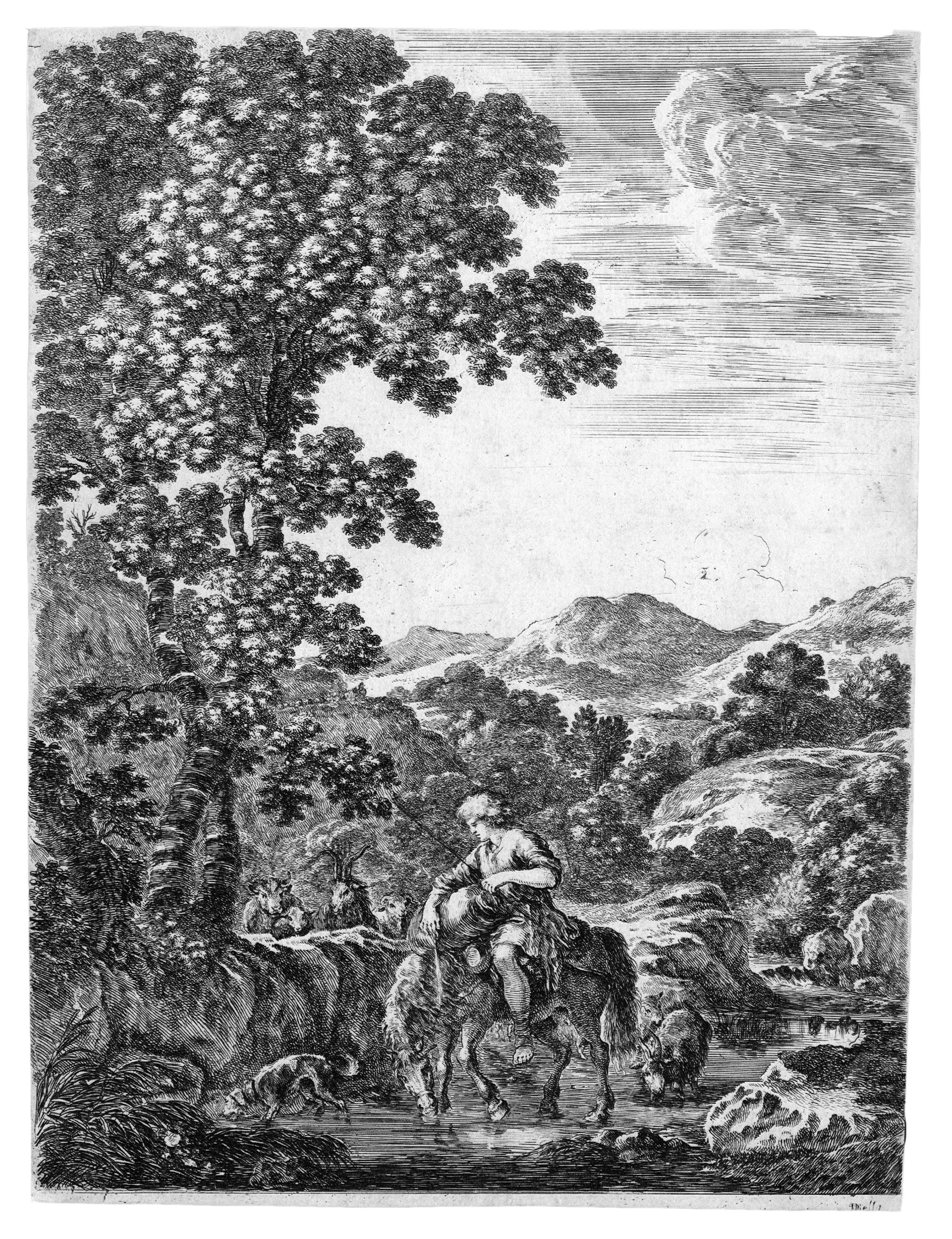 Acquaforte. mm 242x182. De Vesme/Massar, 784. Firmata sulla lastra in basso a destra. Dalla serie Quattro grandi paesaggi in altezza. Stato unico.
