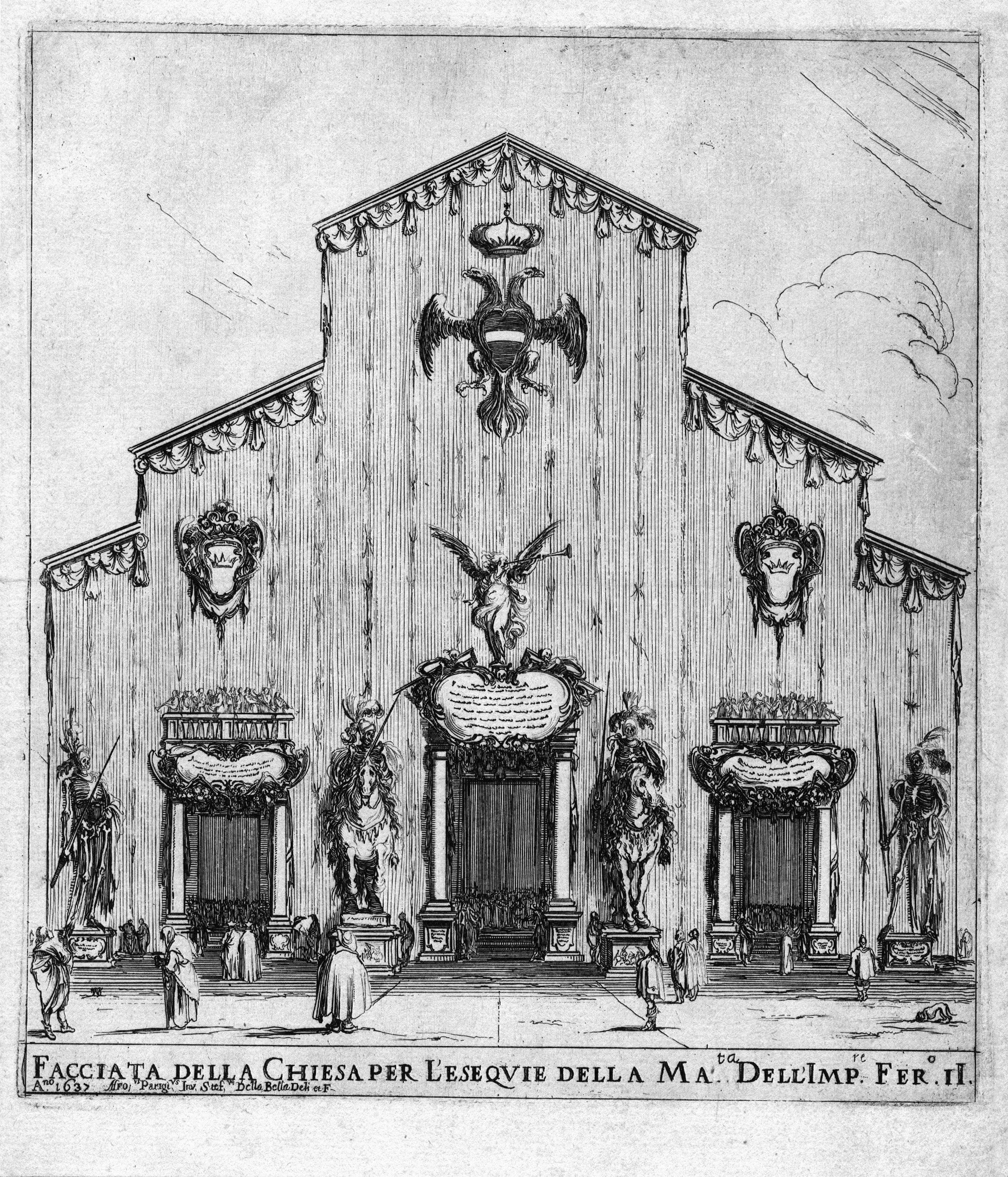 Acquaforte. mm 241x216. De Vesme/Massar, 75. Firmata sulla lastra in basso a sinistra. Dalla serie dedicata ai funerali dell’imperatore Ferdinando. II stato su 2.