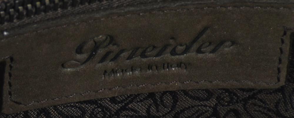 Pineider SHOULDER BAG DESCRIPTION: Taupe fabric shoulder bag with mauve...