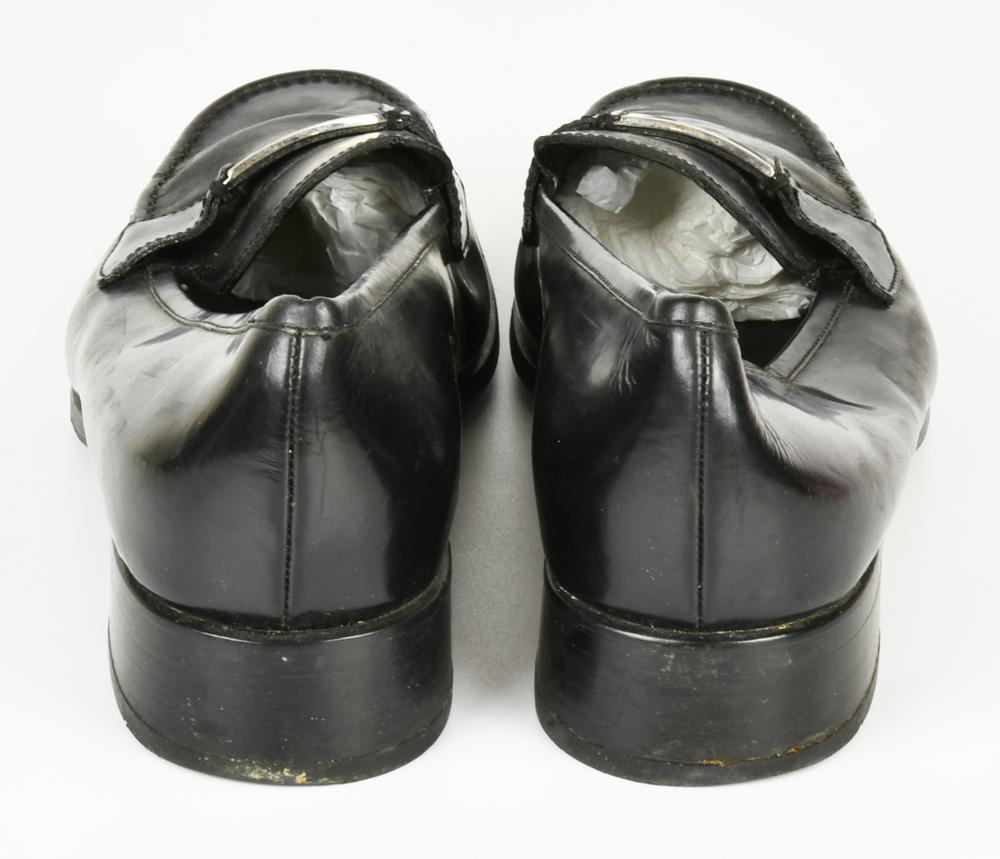 Leather loafer with a metal label on the front. Size 36.5. Made in Italy. Signs of use. Fairly well preserved.