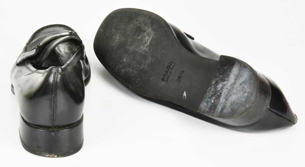 Prada LEATHER LOAFER DESCRIPTION: Leather loafer with a metal label on the...