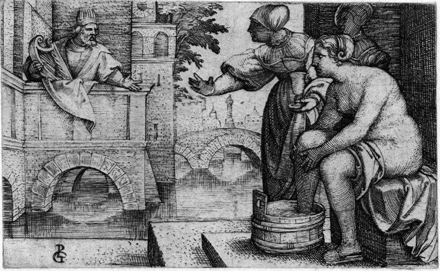 DAVID SORPRENDE BETSABEA AL BAGNO. 1531 ca.