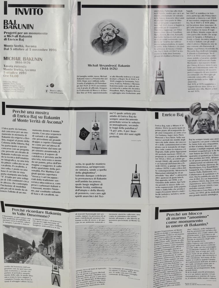 manifesto edito in occasione della mostra Baj - Bakunin dell'ottobre - novembre 1996, l'intervento dell'artista si trova nella parte dedicata all'invito alla mostra