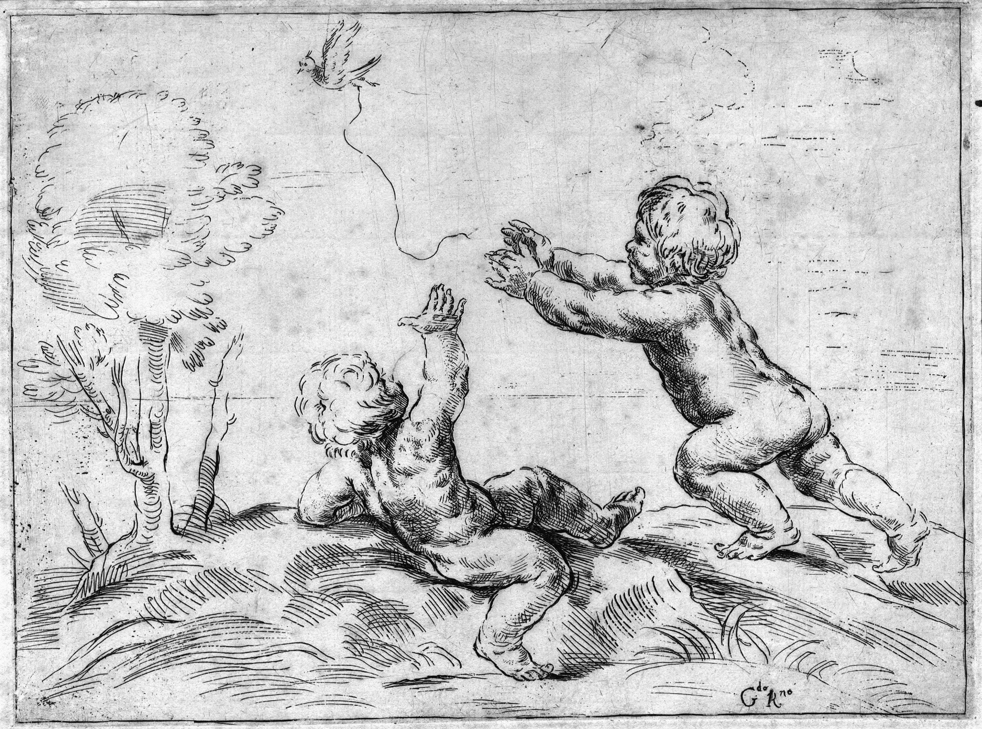 Da un soggetto di Guido Reni di cui compaiono incise le iniziali in basso a destra. Rara incisione nello stato unico conosciuto.