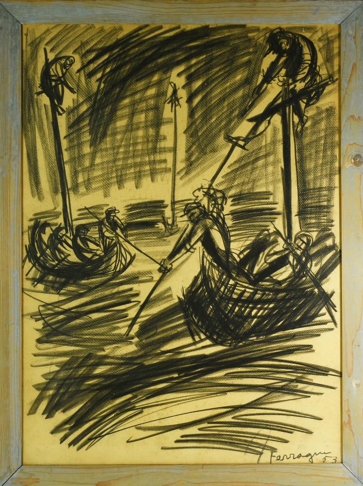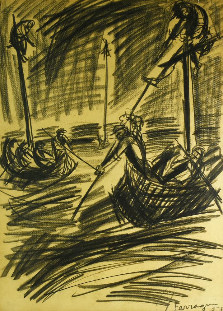 Ferragni GONDOLIERI, 1953 carboncino su carta, cm 70x50 firma e data