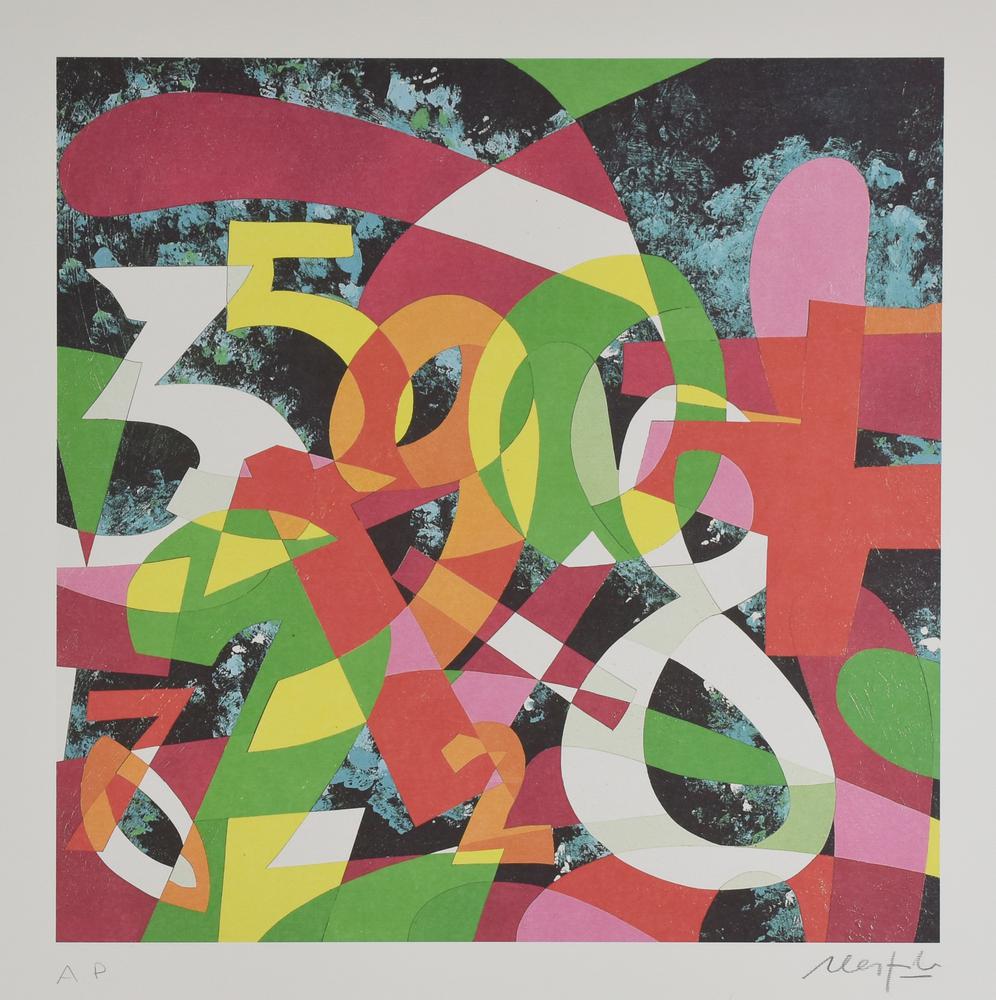 Ugo Nespolo INTRECCI litografia su carta acquerello, cm 48x48; es. A.P. firma...