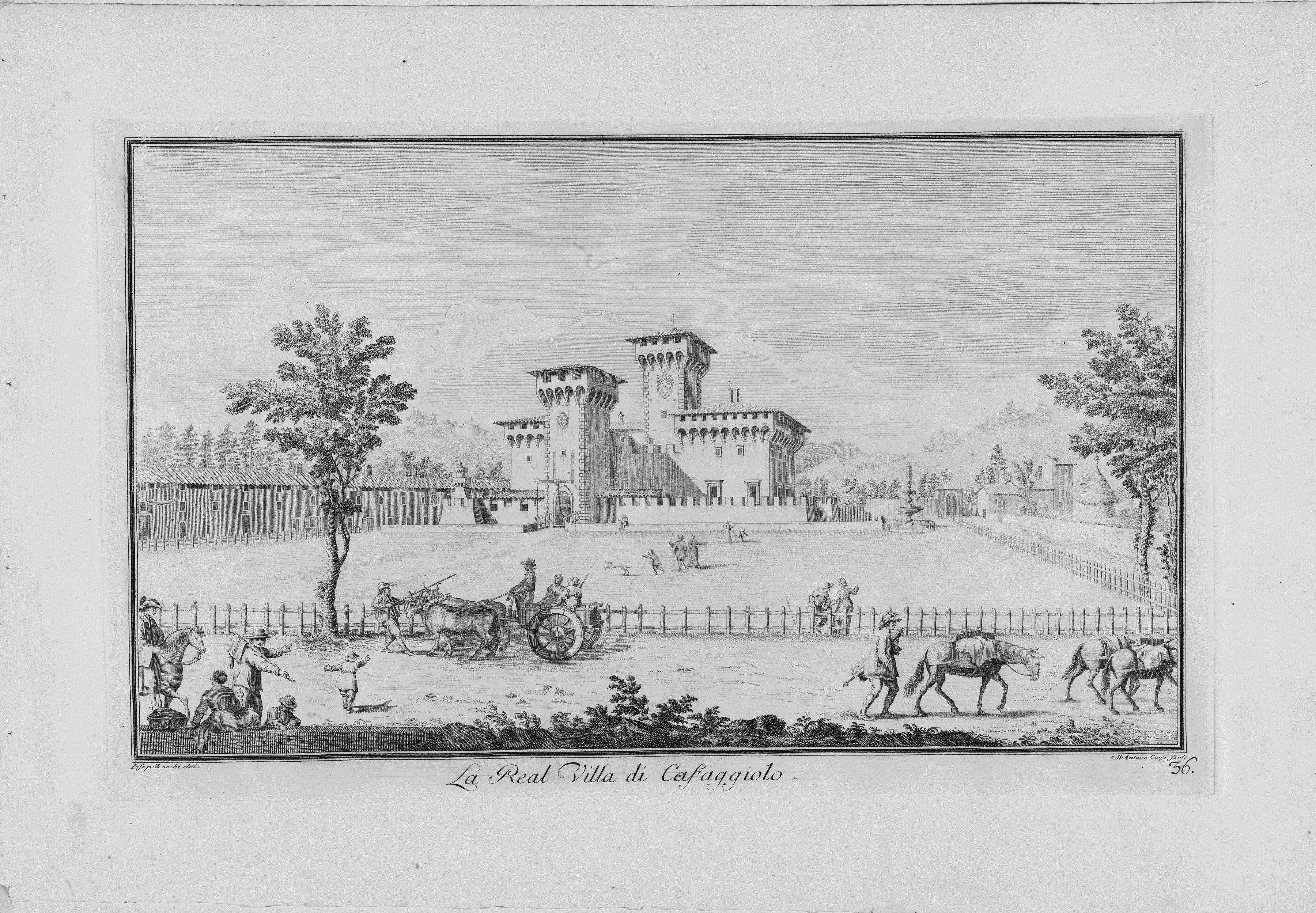 La Real Villa di Cafaggiolo. Acquaforte. mm 300x492. Mason, 65. Bevilacqua, 36.