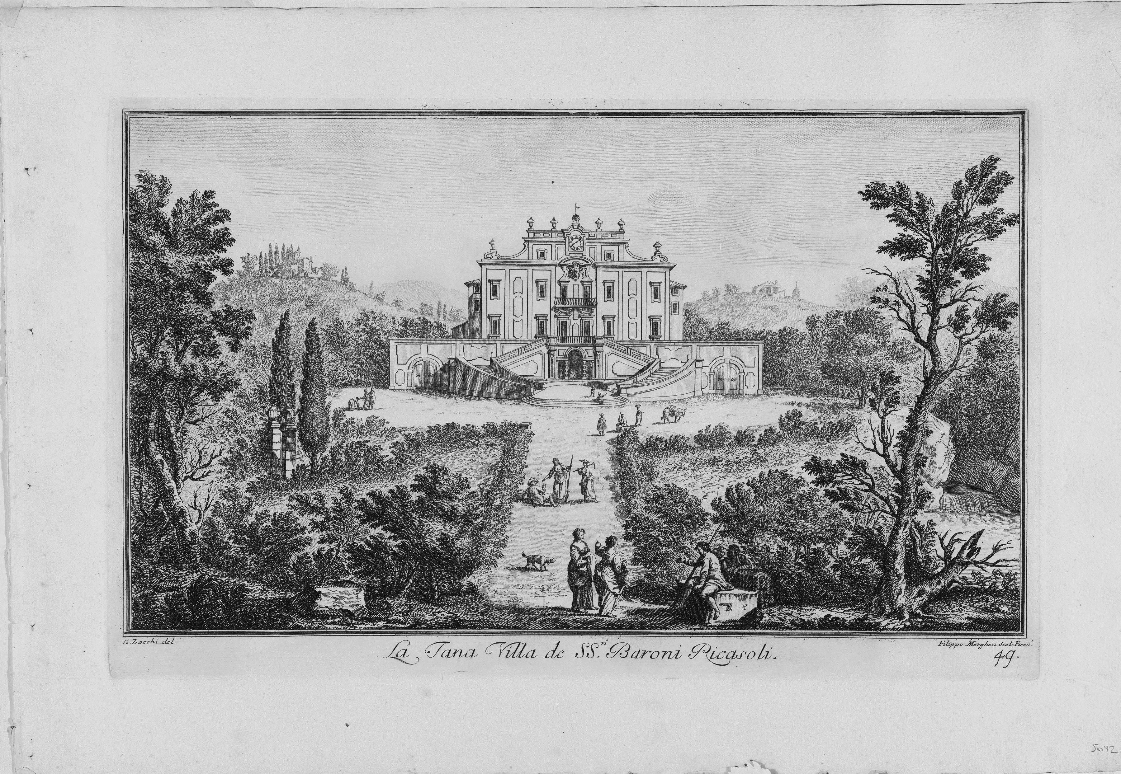 Villa la Tana. Acquaforte. mm 305x488. Mason, 78. Bevilacqua, 49.