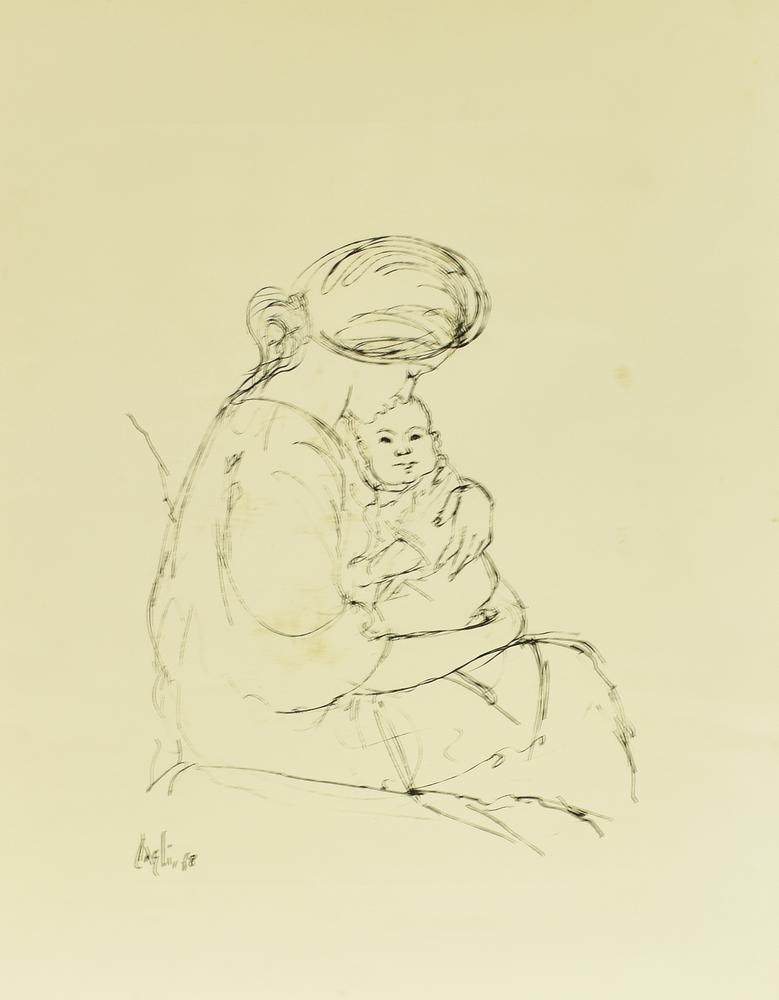 Ignoto MADRE CON BAMBINO stampa su carta cm 65x50 firma in lastra e data...