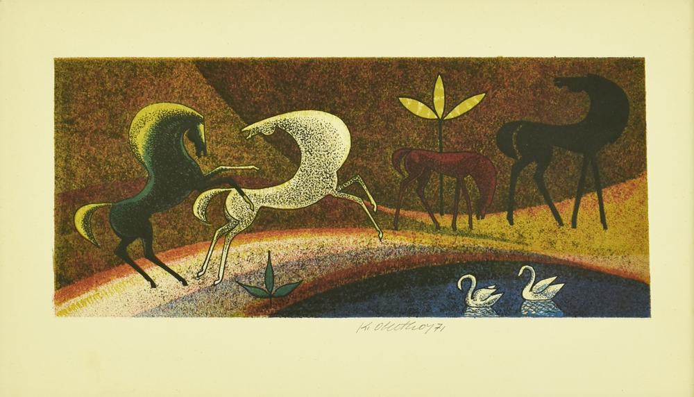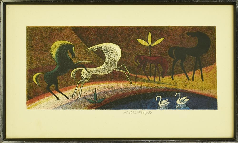 Ignoto CAVALLI litografia su carta, cm 38x23, es. s.t. firma e data eseguita...