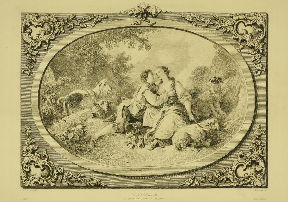 Adolphe Lalauze PASTORALE stampa su carta, cm 20x26 firma in lastra e titolo