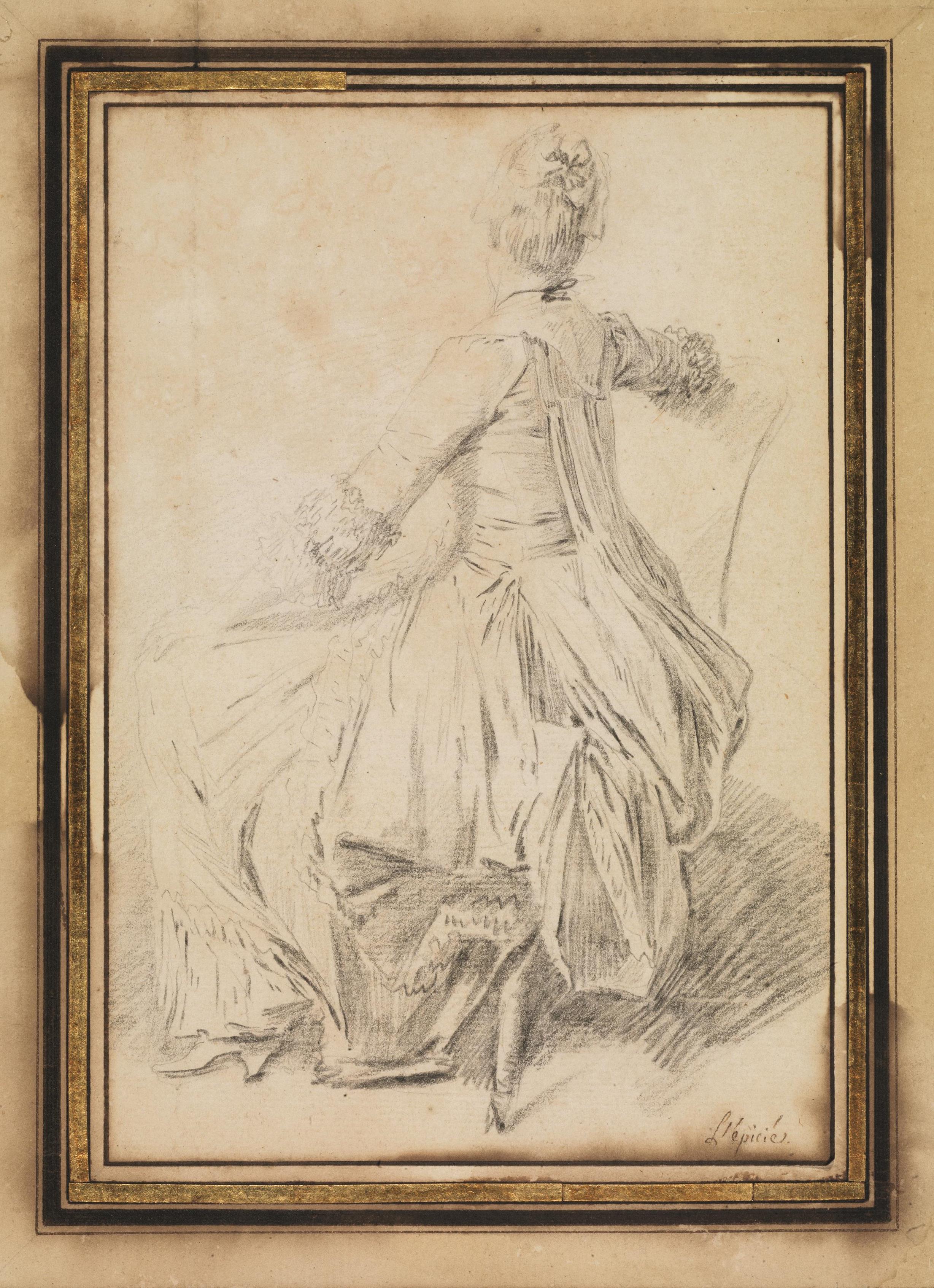 Lépicié, Nicolas Bernard(Parigi 1735 – 1784)DAMA SEDUTA DI SPALLEMatita...