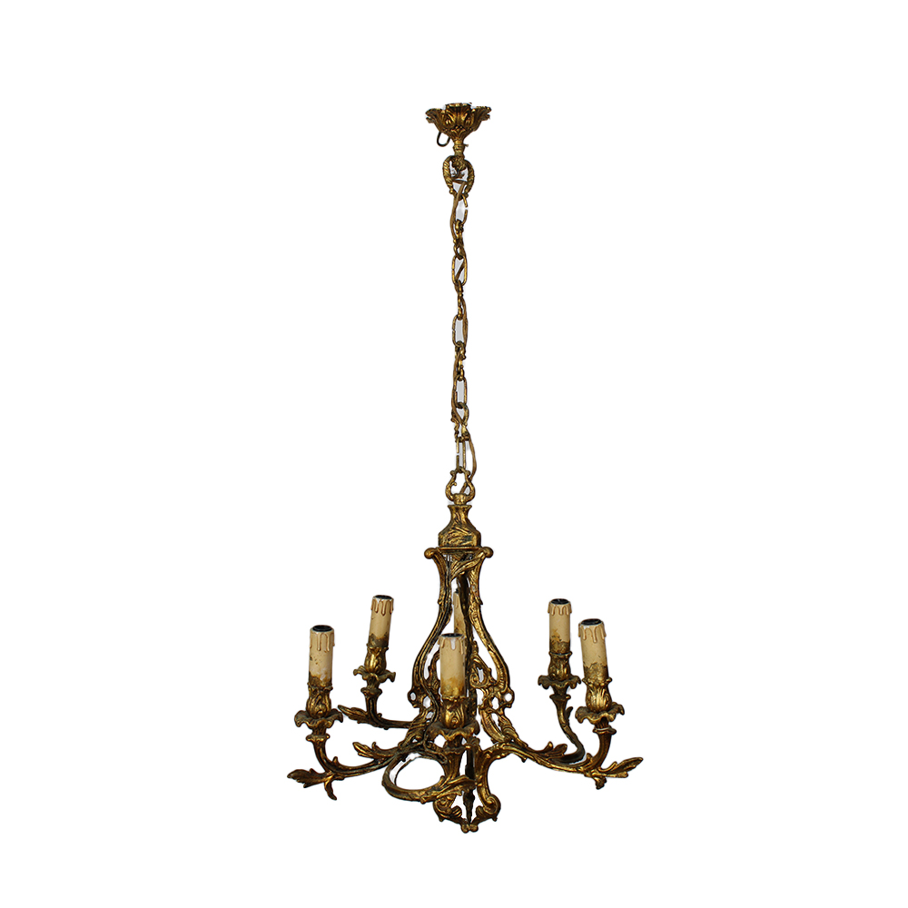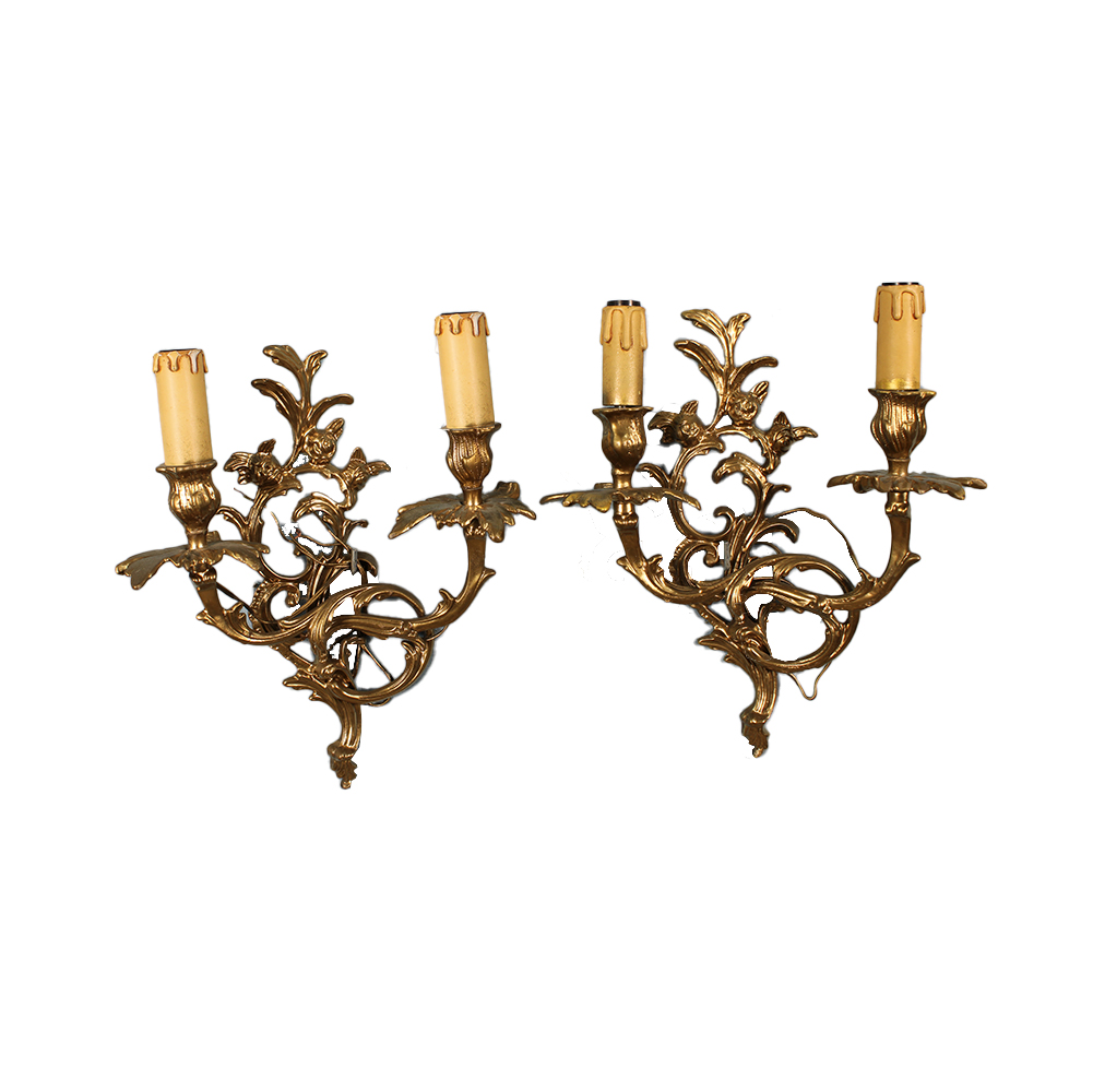 LOTTO COMPOSTO DA 1 lampadario a 6 luci e una coppia di appliques a 2 luci di gusti Luigi XV in fusione di bronzo cesellato e dorato Francia primi 900 lampadario h cm 50 x 43 / appliques h cm 35 x 28 x 10