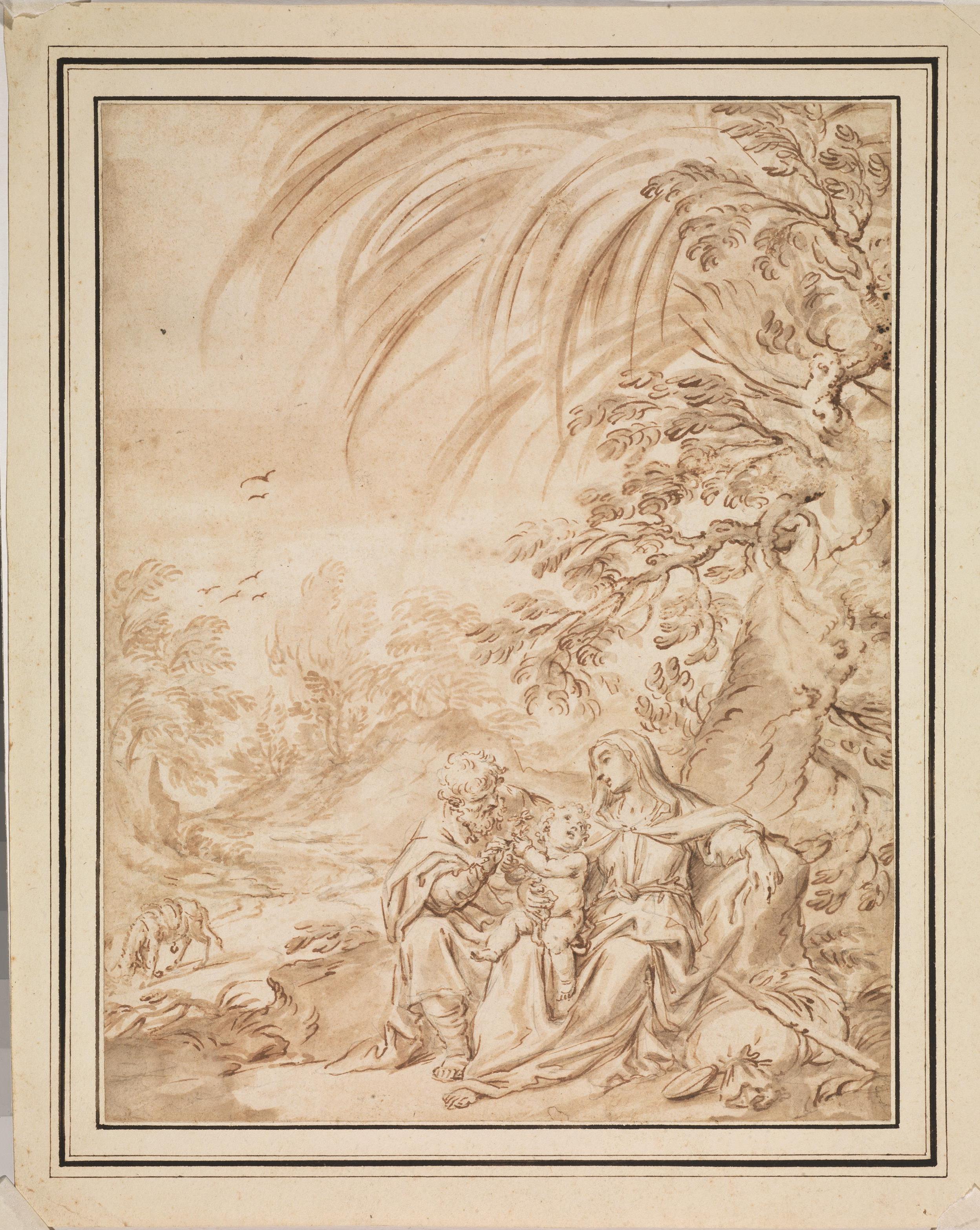 Scuola emiliana I metà del XVIII secoloRIPOSO DURANTE LA FUGA IN EGITTOPenna...