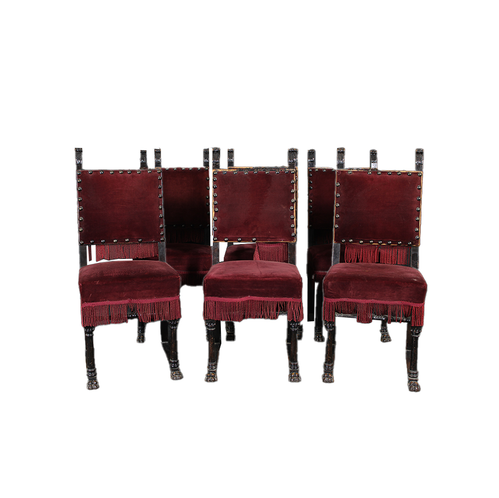 GRUPPO DI 7 SEDIE in stile rinascimento Sicilia primi 900 h cm 108 x 45 x 43