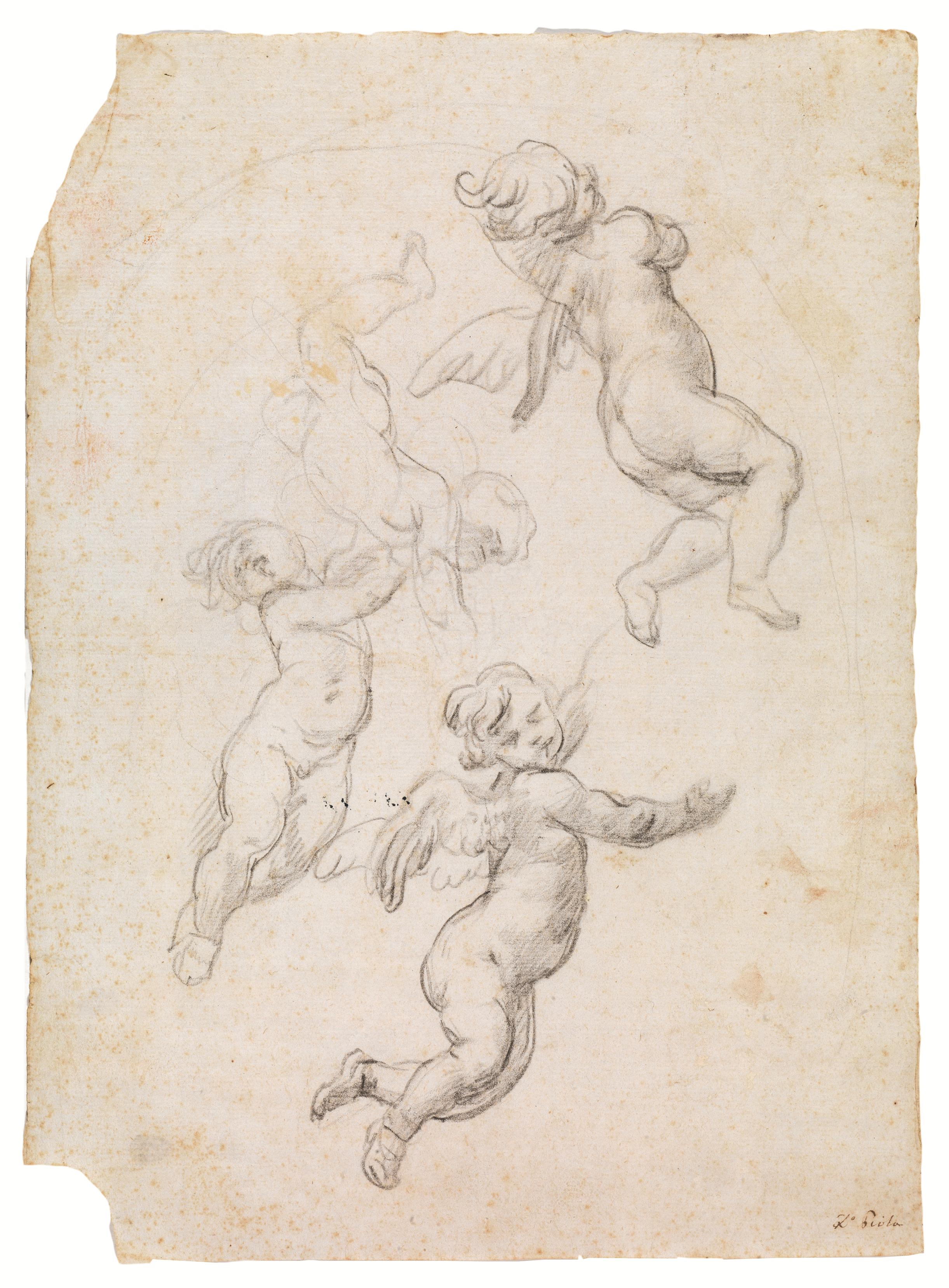Piola, Domenico(Genova 1627 – 1703)STUDIO DI AMORINI IN VOLOMatita nera...