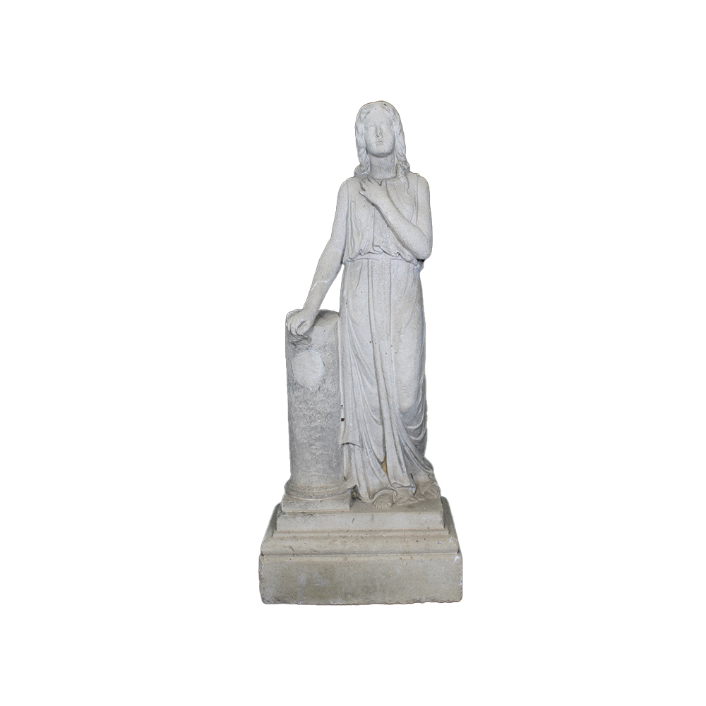 SCULTURA in pietra raffigurante figura femminile poggiata sulla colonna maestranze italiane XIX secolo h cm 140 x 58 x 38