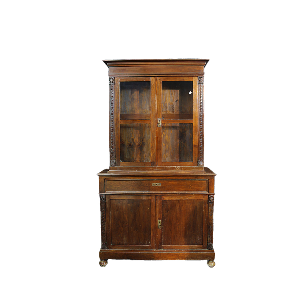 CREDENZA VETRINA A DOPPIO CORPO in legno di noce, la parte inferiore a due sportelli e due cassetti, la parte superiore presenta ante a vetri Sicilia XIX secolo h cm 226 x 114 x 47