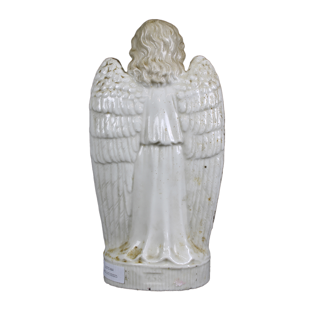 SCULTURA in porcellana raffigurante angelo dipinta in policromia con lumeggiature in oro Francia XIX/XX secolo h cm 25 x 12 x 9
