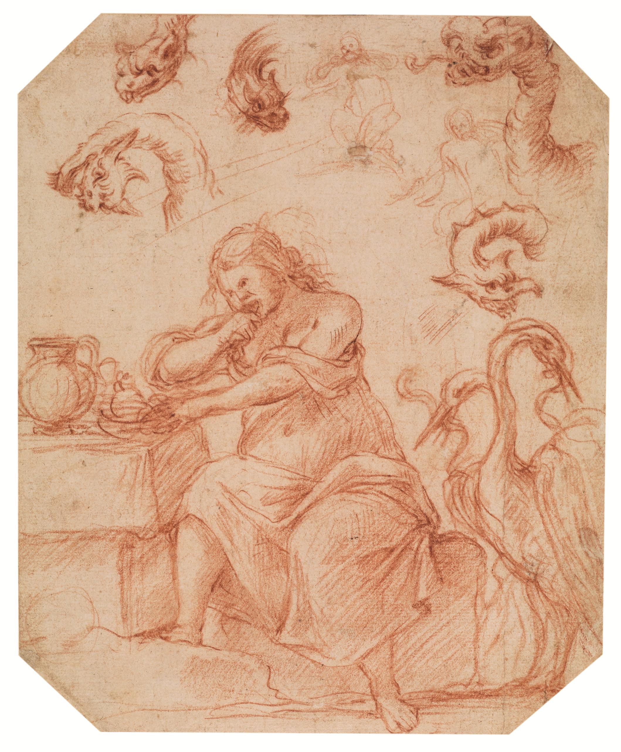 Scuola toscana del XVII secoloDONNA CHE DIVORA IL CIBO E STUDI DI ANIMALI...
