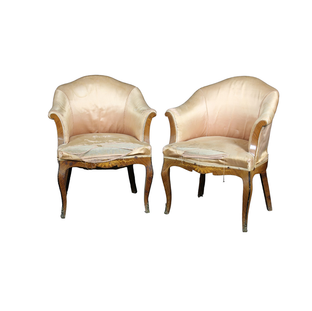 COPPIA POLTRONE A POZZETTO in bois de rose e tarsie Italia XX secolo h cm 82 x 57 x 47
