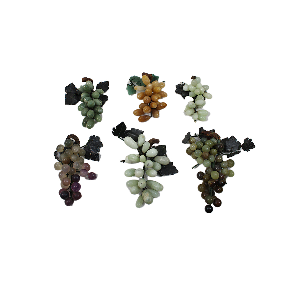 LOTTO DI 6 GRUPPI DI GRAPPOLI D'UVA di diversi materiali tra cui onice e giada manifattura orientale primi 900