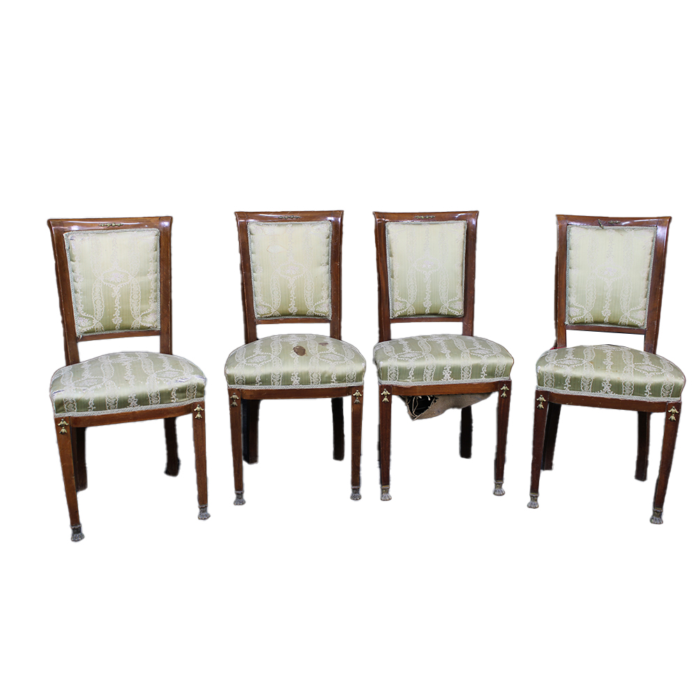 4 SEDIE DI GUSTO IMPERO in legno di mogano con applicazioni in bronzo Sicilia primi 900