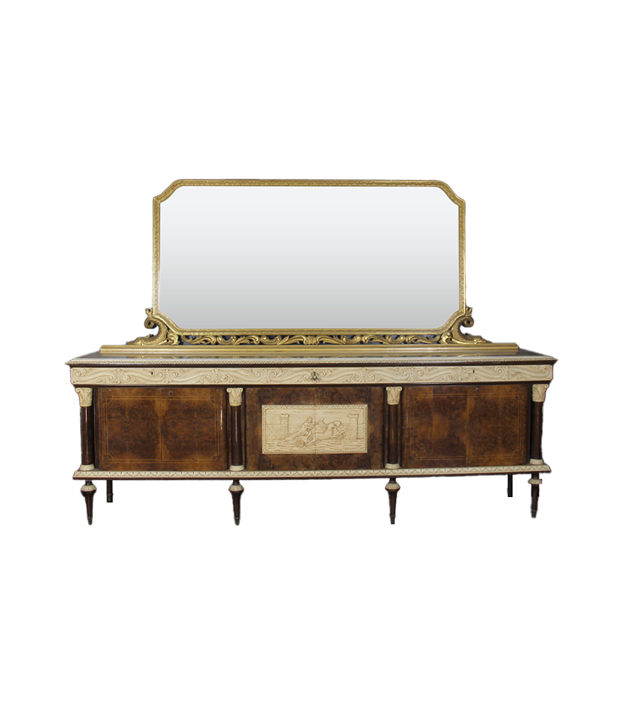 CREDENZA CON SPECCHIERA in stile eclettico contemporaneo modernariato h cm 200 x 267 x 54