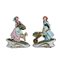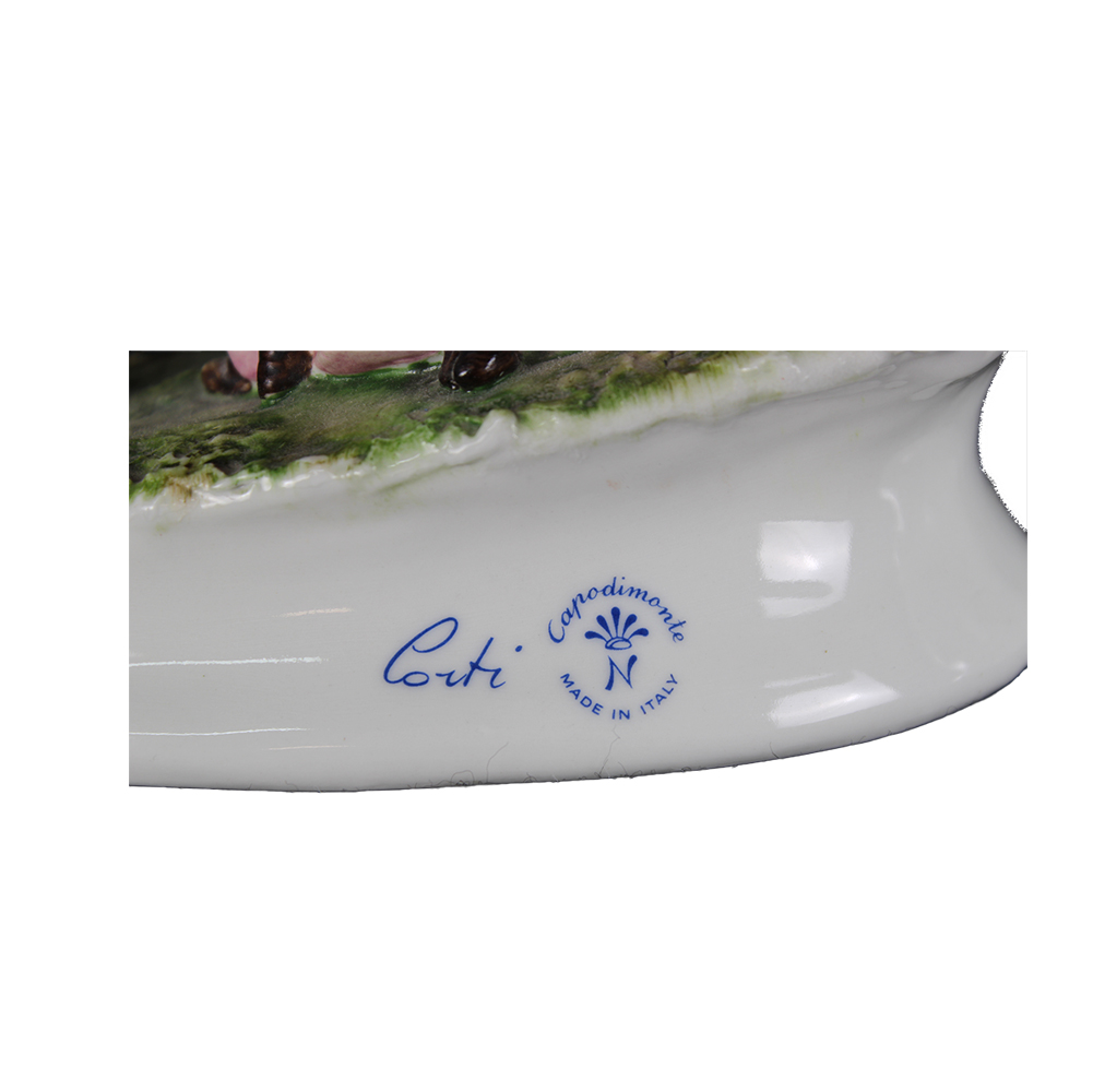 DUE GRUPPI in porcellana dipinta con lumeggiature in oro raffigurante contadine manifattura Corti Capodimonte Napoli XX secolo h cm 24 x 19 x 11,5