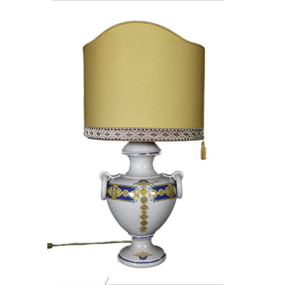 LUME in maiolica dipinta con paralume in stoffa manifattura Castelli Italia anni 90