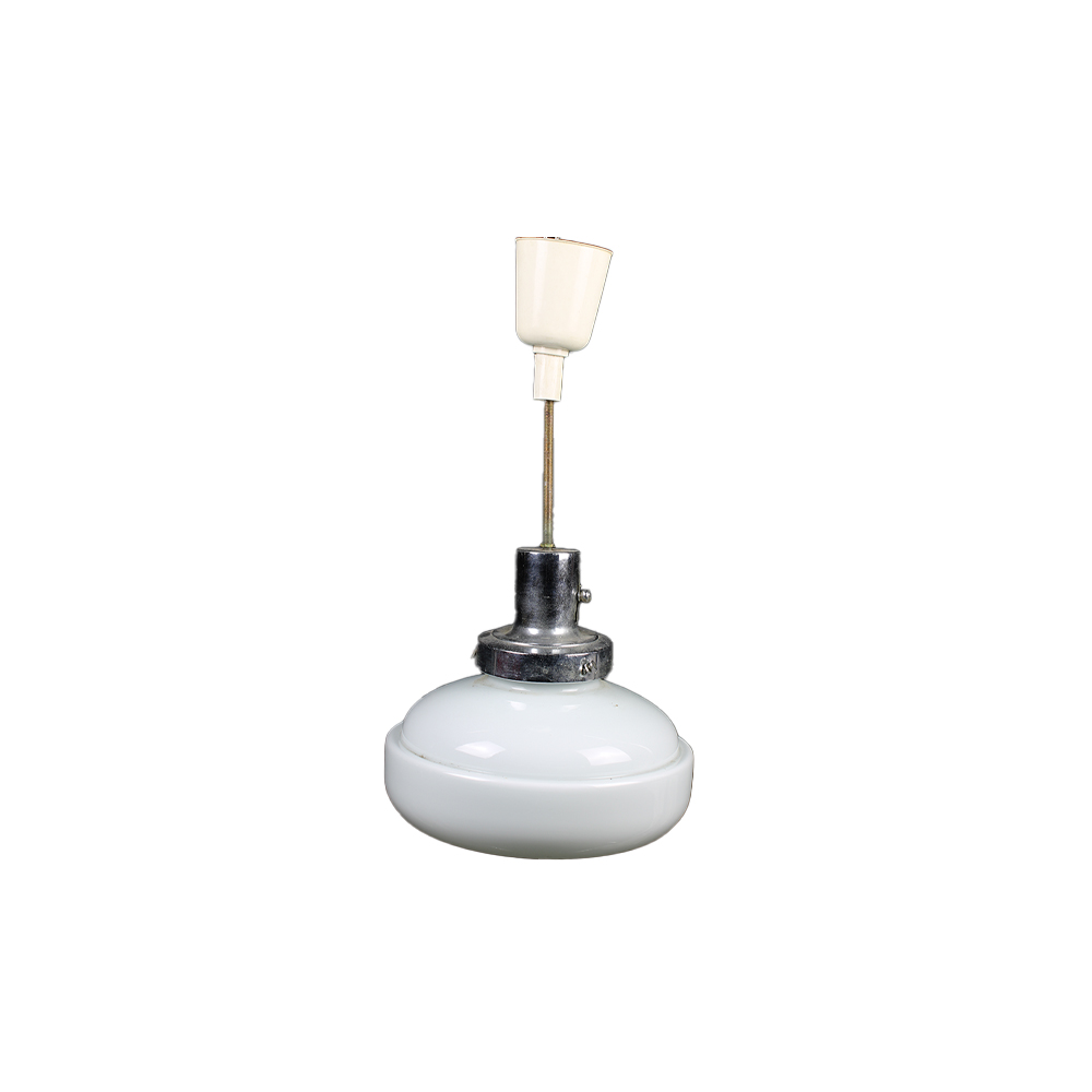 PICCOLA SOSPENSIONE produzione italiana anni 60 con grande boccia in opaline bianca h cm 55 x 31