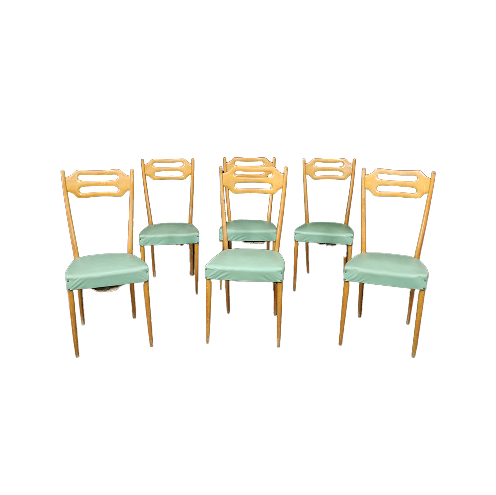 6 SEDIE in legno produzione italiana periodo stimato anni 50 h cm 97 x 43