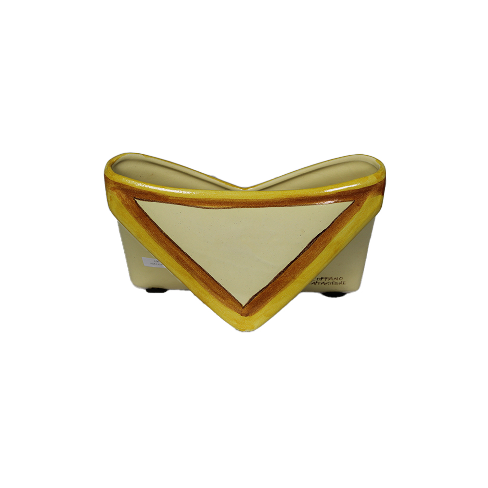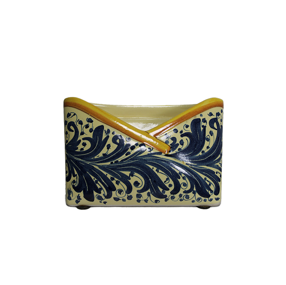 PORTACARTE in maiolica dipinta firmato Coffano Caltagirone XX secolo h cm 16,5 x 25 x 10