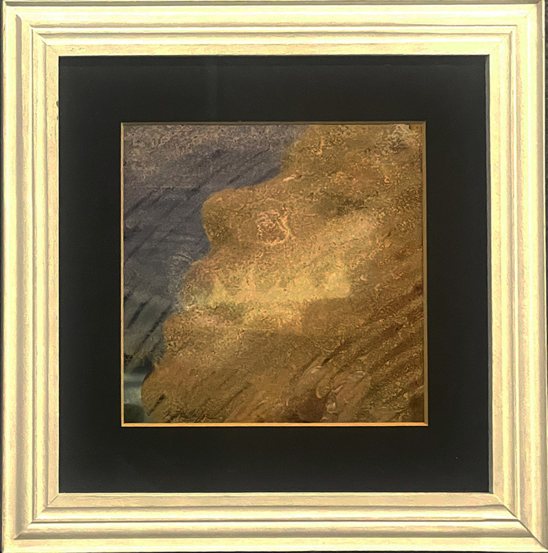 MIMMO ROTELLA, "Fuoco d'amore", 1972, tecnica mista (effacage) su cartoncino, 21x21,5 cm, Opera Archiviata dalla Fondazione Mimmo Rotella al N°1126 EF 972/000. Al fronte: firma e anno in basso a sinistra. Opera con cornice.