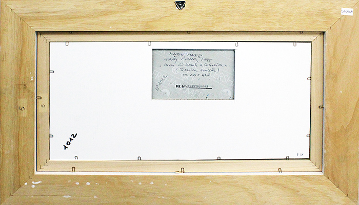 WALTER PIACESI, "Molo di Levante a Cattolica", 1995, Tecnica mista su cartoncino, Dim. 24x47,7, Al fronte: firma in basso a destra, titolo e anno, Al verso: anno, firma, titolo, tecnica, dimensione